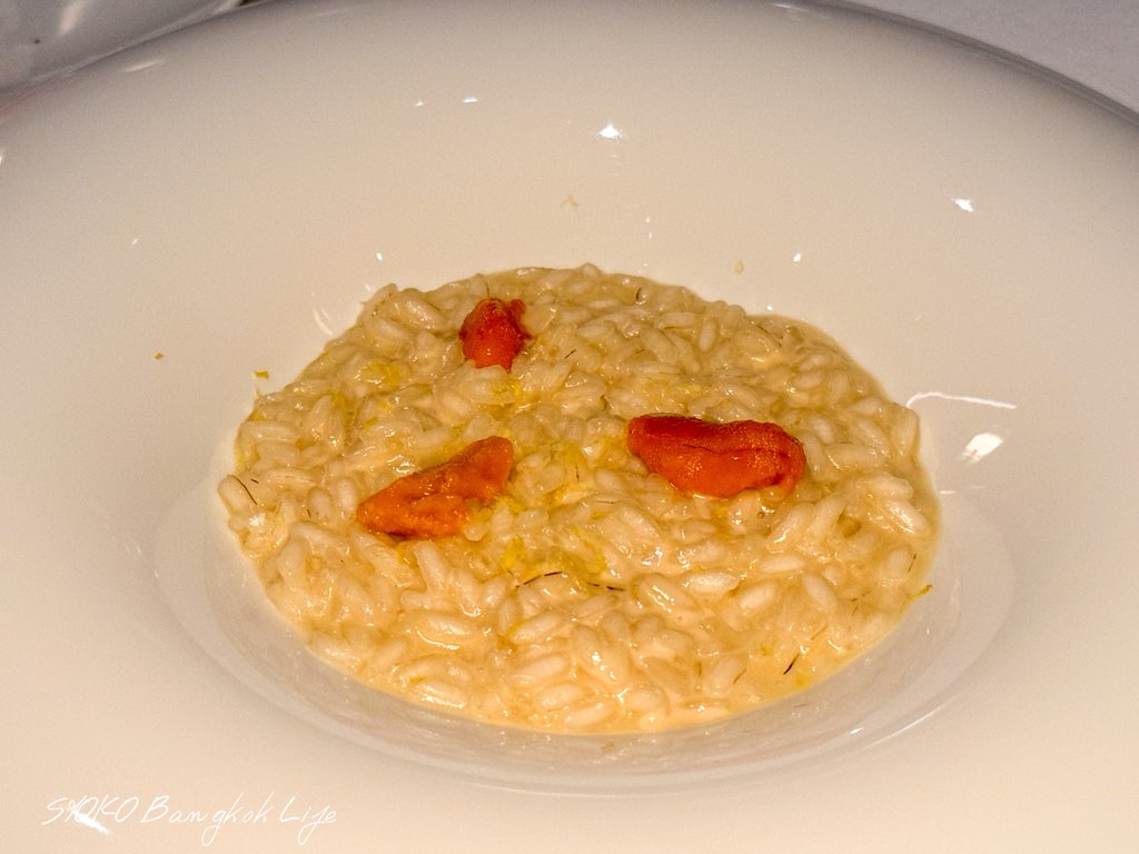 日頃イタリアンで食べているリゾットよりも結構硬めのテクスチャーで、お米の芯を感じれるほど。レモンの香りがさっぱりしつつも、優しめのクリームリゾット。ウニの濃厚さで一気に口が華やぎます