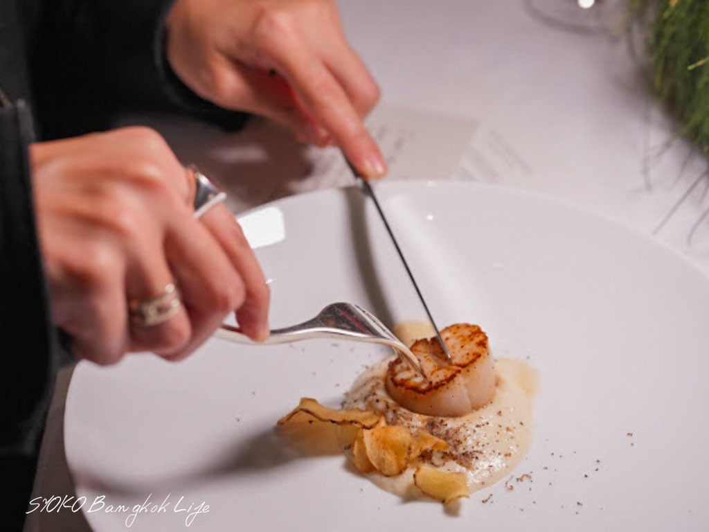 白トリュフの味が引き立つように、優しいクリームと香ばしいホタテのコンビネーションは、口に入れる度に幸せ〜と思えるメニューです