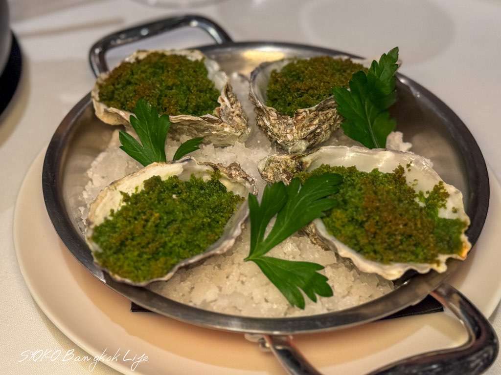 グラタン仕立てになったオイスター。ガーリックとチーズの風味が強くあるものの、中のオイスターの塩味も負けない、とてもバランスの良い組み合わせになっていて、オイスターとガーリック好きの私に刺さったメニューです。とても美味しい!