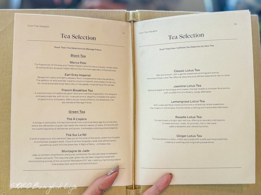 ノンカフェインで揃えられたSaro teaはデュシタニバンコクでしか飲めないセレクトだそうです。