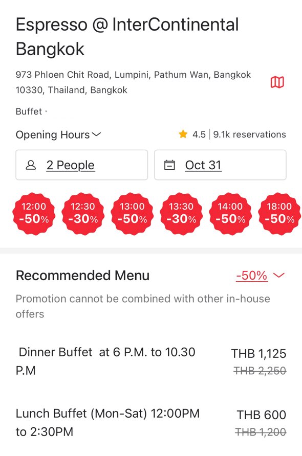 先日行われたタイティアオタイでは、50%オフのスペシャル価格で販売されていたバウチャーですが、お得に利用したい方はこまめにeatigoをチェックするといいと思います。