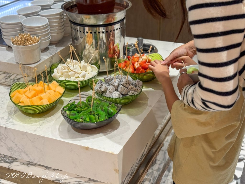 このデザートは通常のビュッフェにもあるラインナップなのですが、フルーツからケーキ、アイス、チョコフォンデュと幅広く網羅。