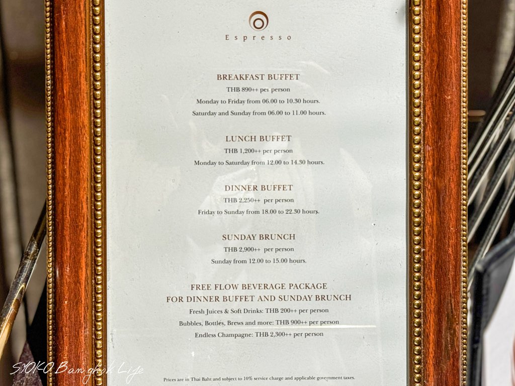 Espressoでは各時間、各曜日で様々なビュッフェが開催。