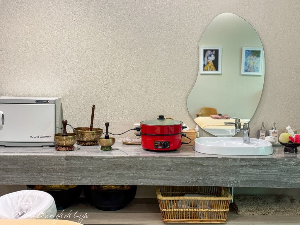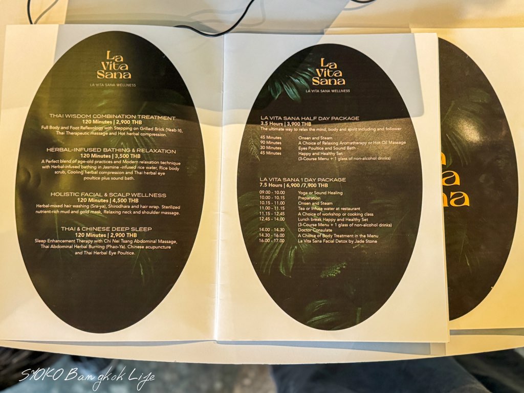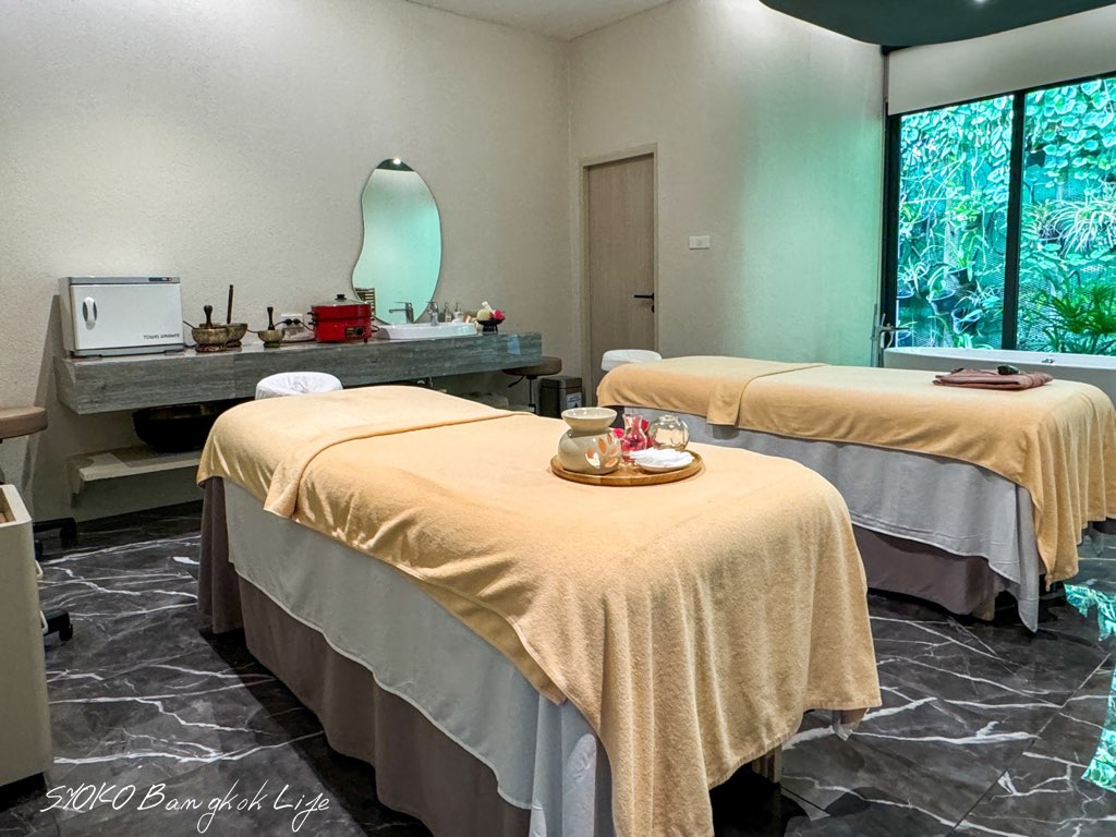 お互い異なる施術を選び、そこにウェルネス施設っぽく「Thai Herbal Eye Poultice 900B」を付けました。