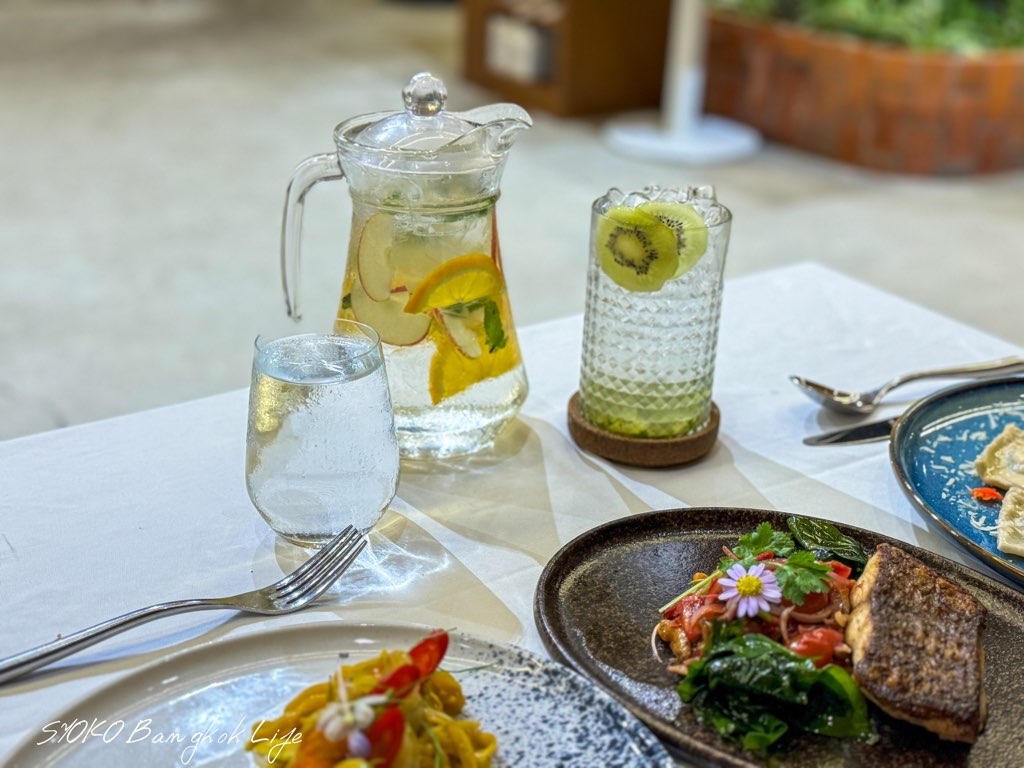 ドリンクもヘルシー系が多く、私は1Lもあるデトックスウォーターを頼み、飲み干しました。