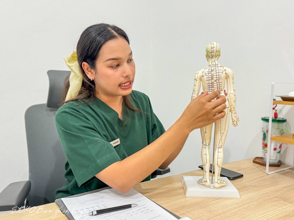 中華系のおばあちゃん先生を想像していたら、自分たちよりも若そうな可愛い先生が問診してくれてびっくり!受けたい施術が今の自身に適正かどうか、脈を測られたり、舌をチェックされたり、肩や首周りを押されたりします。
