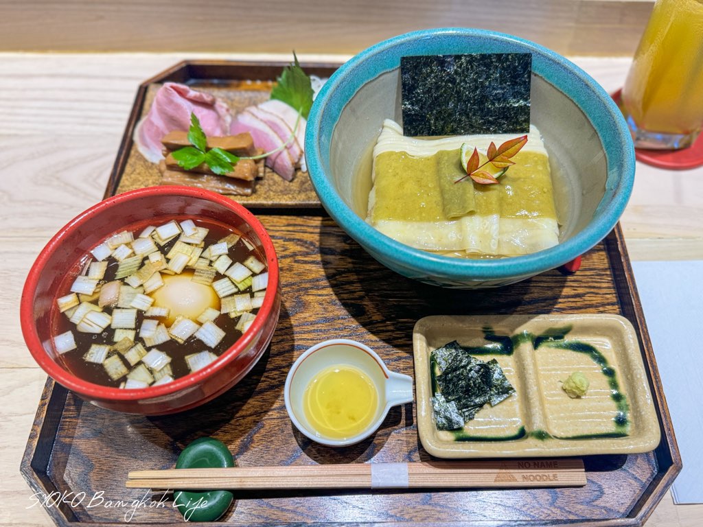 つけ麺好きの私が頼んだのはKOMBUSUI SHOYU TSUKE SOBAです。アラカルトでオーダーしましたが、こんなにも美しくまるで御膳のようなスタイルで提供されます。