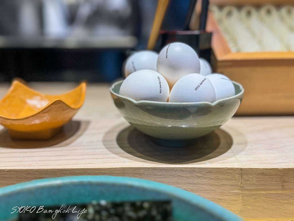 ここで使用する卵はオーガニックファームと契約したオリジナルの卵だそうで、殻の部分にロゴが入っているあたりにも注目です。