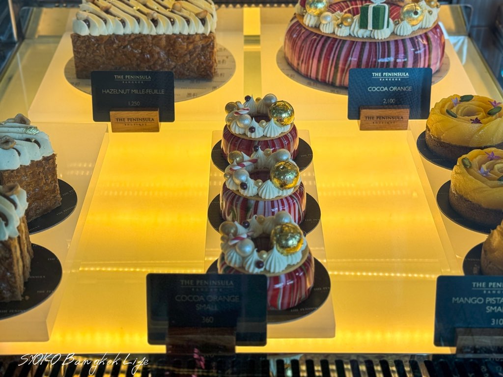 以前までの記憶ではここになかったショーケースですが、この時期に限りクリスマスケーキやチョコレートの詰め合わせなどが売り出され、これがまた特段に可愛い色合い♡