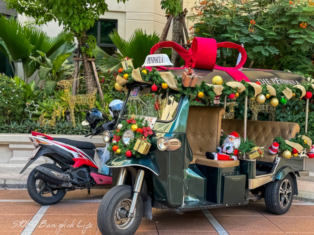 外に置いてあるホテル専用のトゥクトゥクもクリスマスデコレーションが施されていてとても可愛くなっていました。