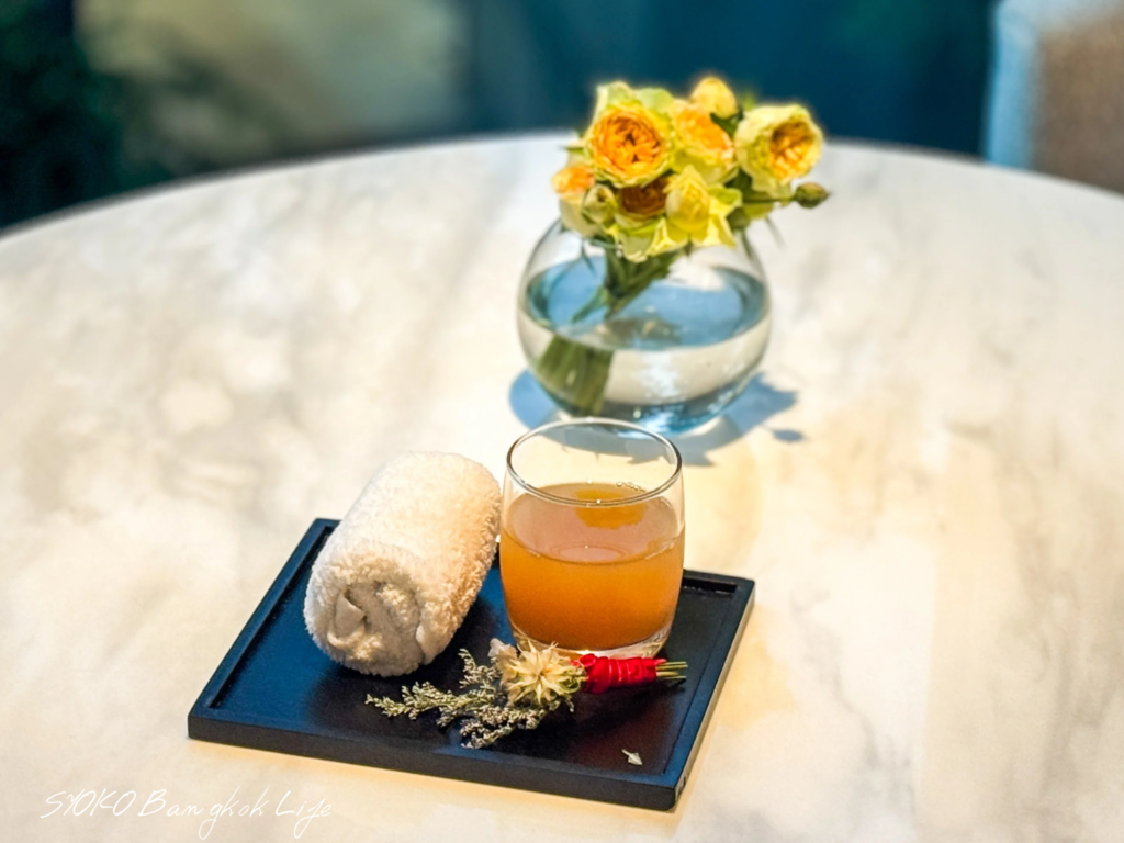 ウェルカムドリンクをいただきながらチェックインを済ませ、