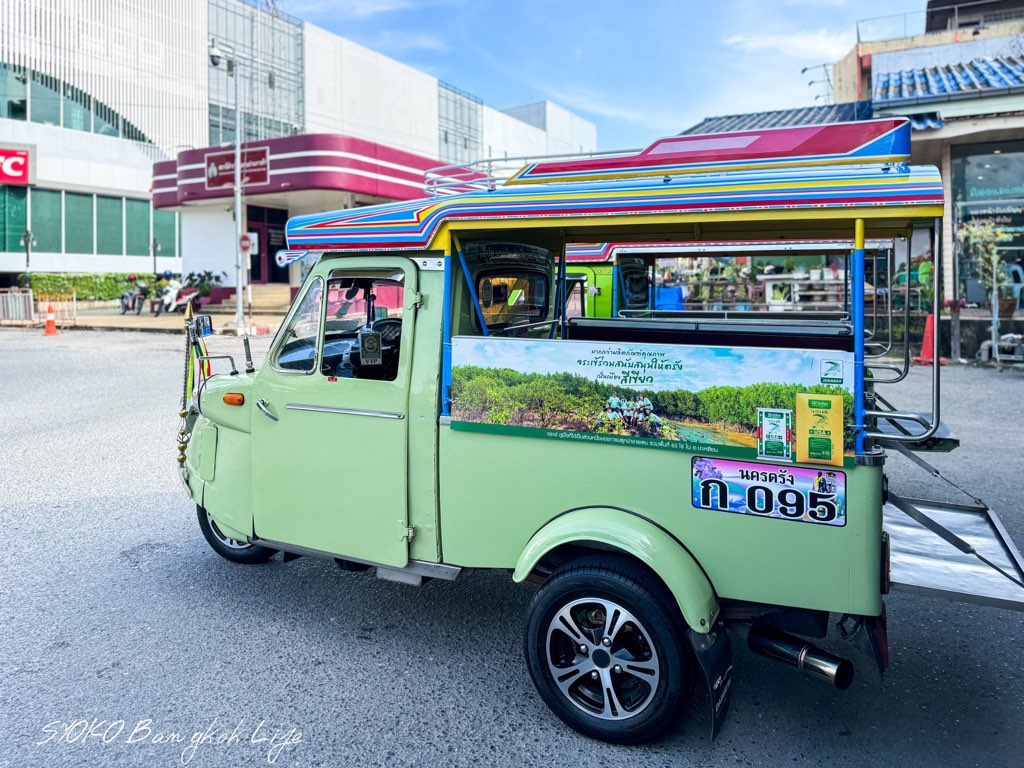 ここで乗るのが、トラン名物の「トゥクトゥク フア ゴップ(ตุ๊กตุ๊กหัวกบ)」