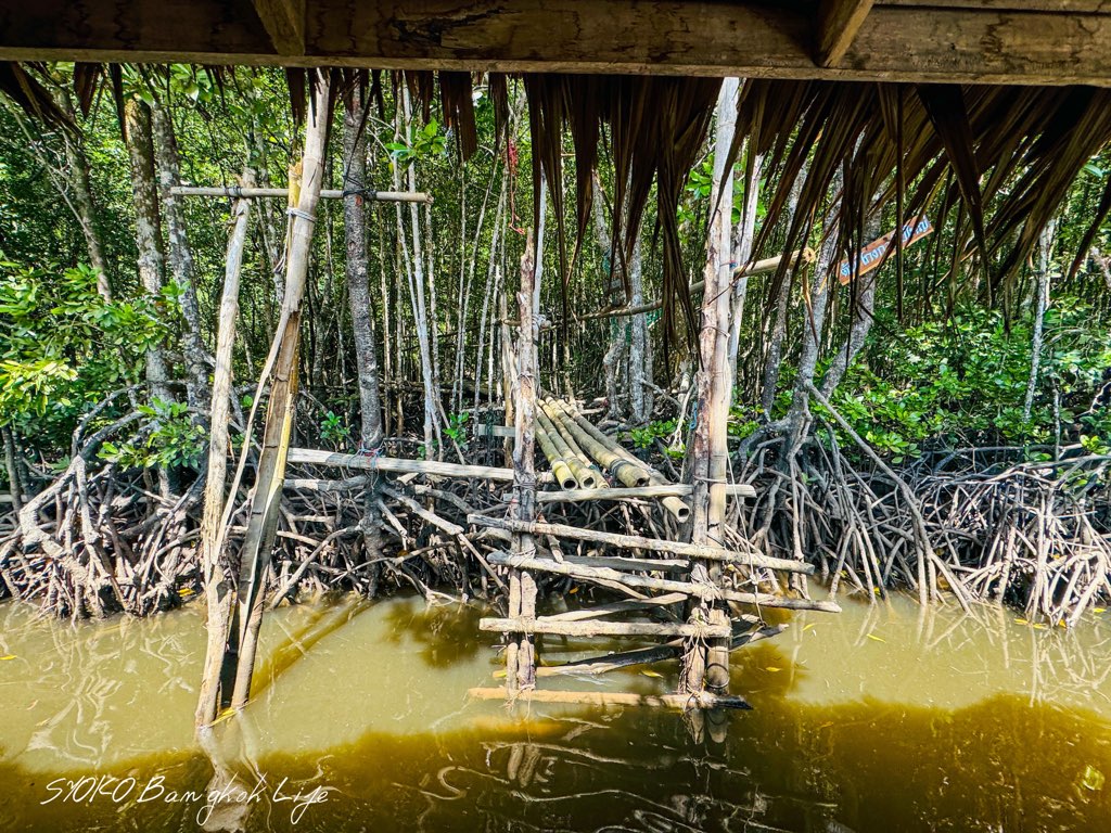 これはただの筏ではなく、家がそのまま水に浮いてるの?と思うほど巨大な筏ボートに乗って、マングローブの川をゆっくり下っていくアドベンチャーです。