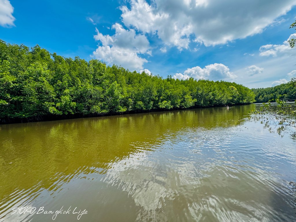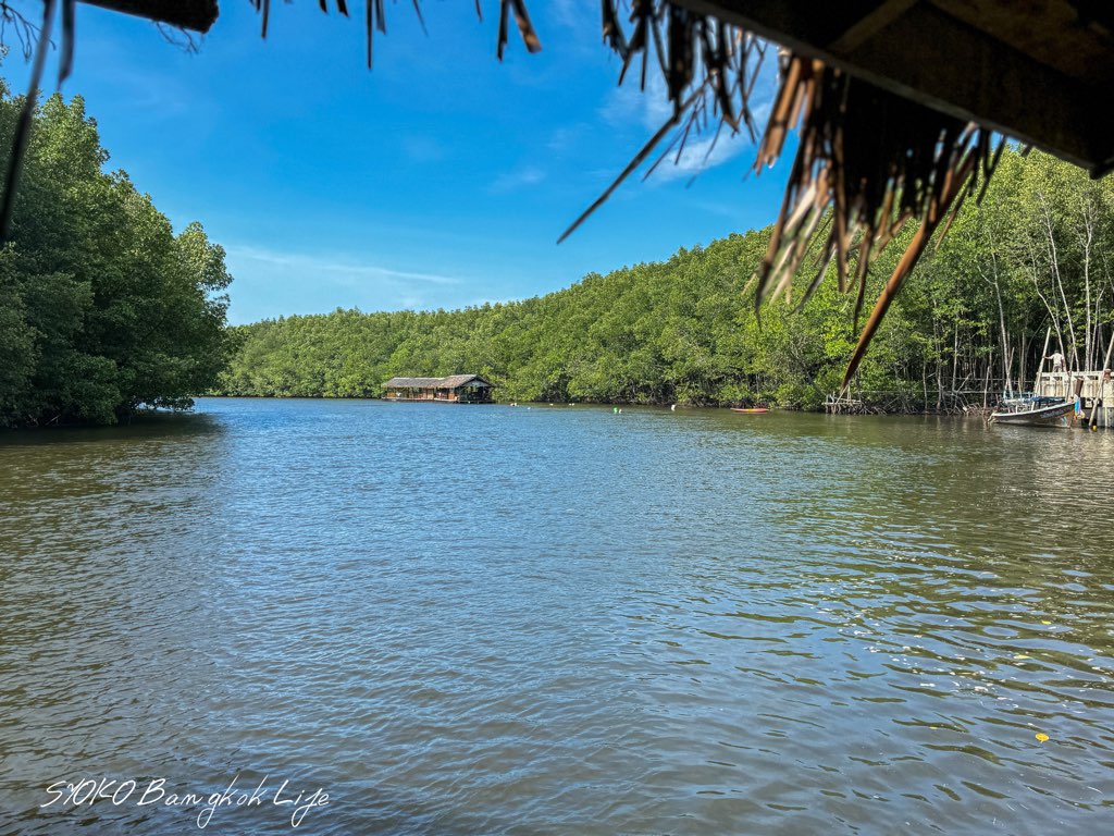 静かな川を進むにつれて、両側には深い緑のマングローブが広がり、鳥の声と水の音だけが響く癒しの世界。ゆっくりゆっくり水を滑る優しい音だけ響きます。