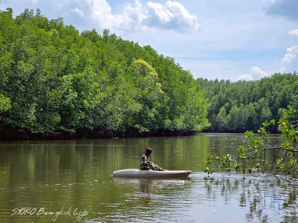 静かな川を自分のペースで漕ぎながら、四方に広がるジャングルの景色にのびのびと癒されます。カヤックが“自由に使える”のも、このKhao Chom Pa ツアーの魅力のひとつ。